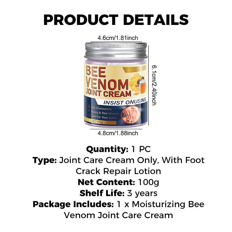 Package Includes: 1 x Moisturizing Bee Venom Joint Care Cream