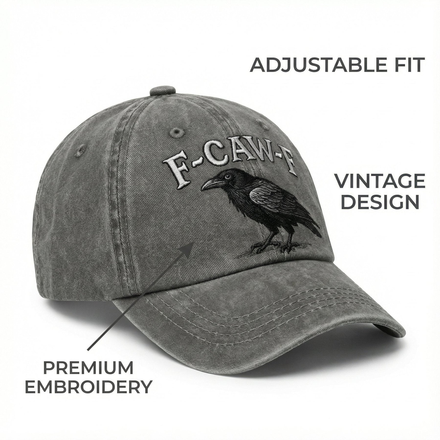 🧢 Vintage Raven Embroidered Baseball Cap – “F-CAW-F” Edition