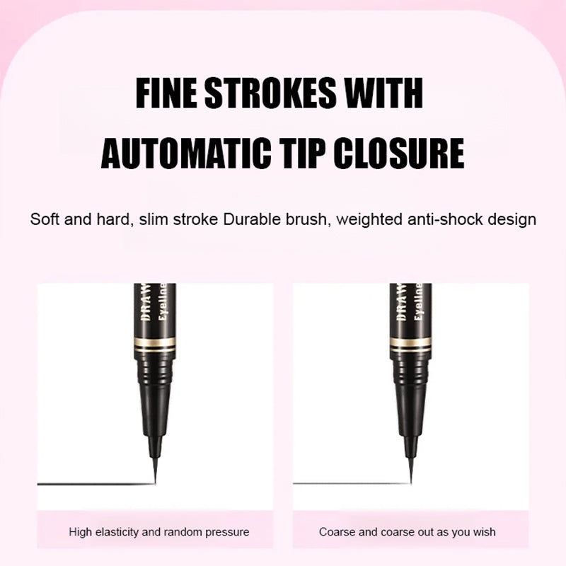 Giúirí boga, ard-leaisteacha - Tá brístíní boga, ard-leaisteacha sa eyeliner leachtach seo a sholáthraíonn sleamhnú réidh gan stró. Tá na brístíní deartha chun oiriúnú do chomhrianta do shúile, rud a chinntíonn cur i bhfeidhm beacht agus compordach gan aon ghreannú.