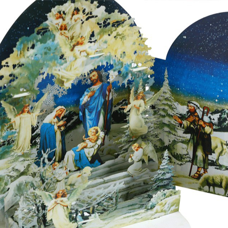 Delicato set di biglietti d'auguri per presepe pop-up 3D