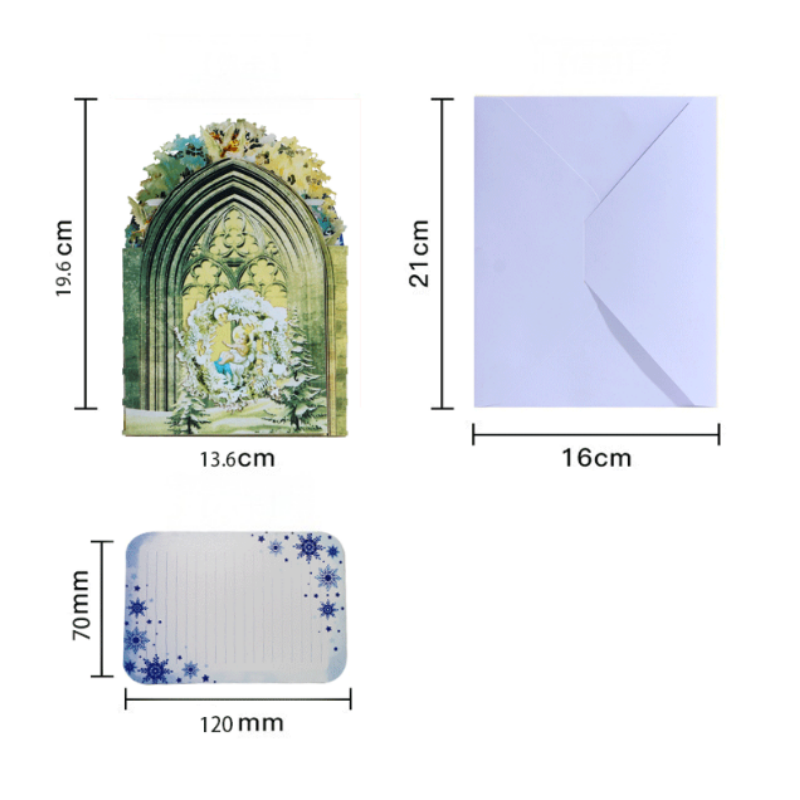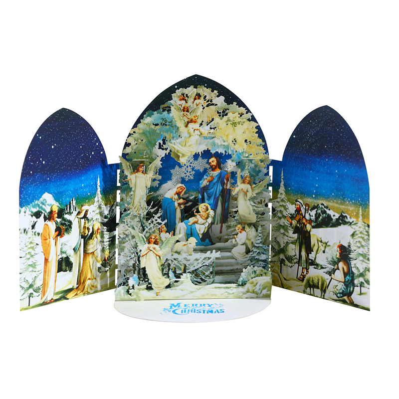 Il pacchetto include: 1*Delicato set di biglietti d'auguri con scena della natività pop-up 3D