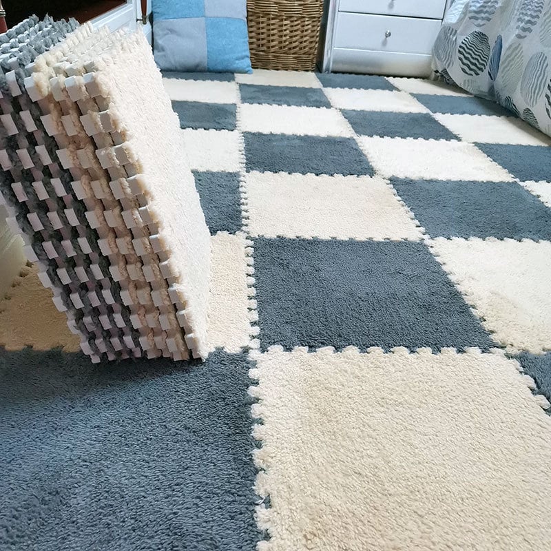 Plush floor mats that can be pieced together at will and placed in any area or corner you want