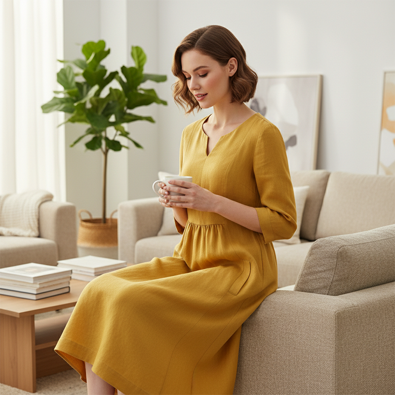 CONVENIENT SIDE ZIPPER - Ensures a smooth, seamless fit that's easy to put on and take off. This hidden detail maintains the dress's clean lines while offering practical functionality for effortless, everyday wear.
