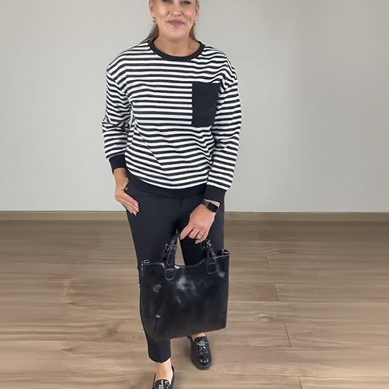STYLISH COLOR BLOCK DESIGN – The striped top and solid pants offer a trendy, chic look. The color contrast adds a modern touch, while the simple round neckline and long sleeves keep it classic and easy to wear. No overthinking is required for effortless style.